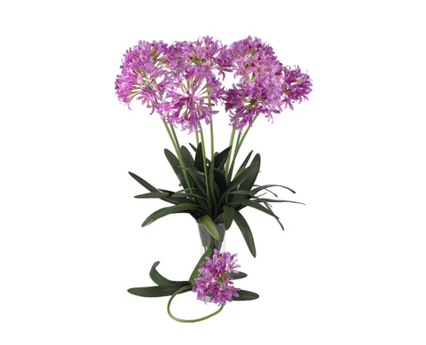 These vibrant pink african lilies stand at 29" tall and can be bent into different shapes. Native to South Africa these are sometime's referred to Agapanthus Africanus and feature dark green leaves. Comes with 12 stems.